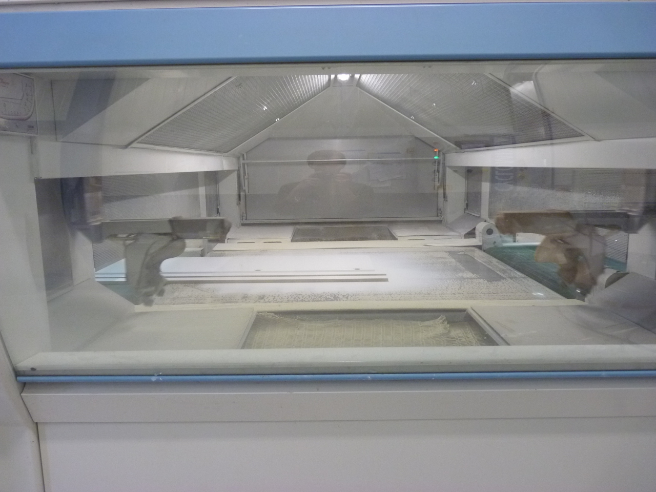 In onze spuiterij staat ook een zogenaamde “kantenlakmachine”. Deze is speciaal ontwikkeld om de zijkanten van MDF panelen te bewerken en te lakken. Deze machine is te vergelijken met een kantenaanlijmmachine maar dan met UV lak. De zijkanten van de MDF panelen worden eerst geschuurd, geborsteld en daarna voorzien van lak d.m.v. een wals. Deze lak wordt in een fractie van een seconde uitgehard door gebruik te maken van UV licht.