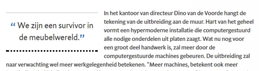 In de pers : "Meubelfabriek Van de Voorde breidt flink uit"